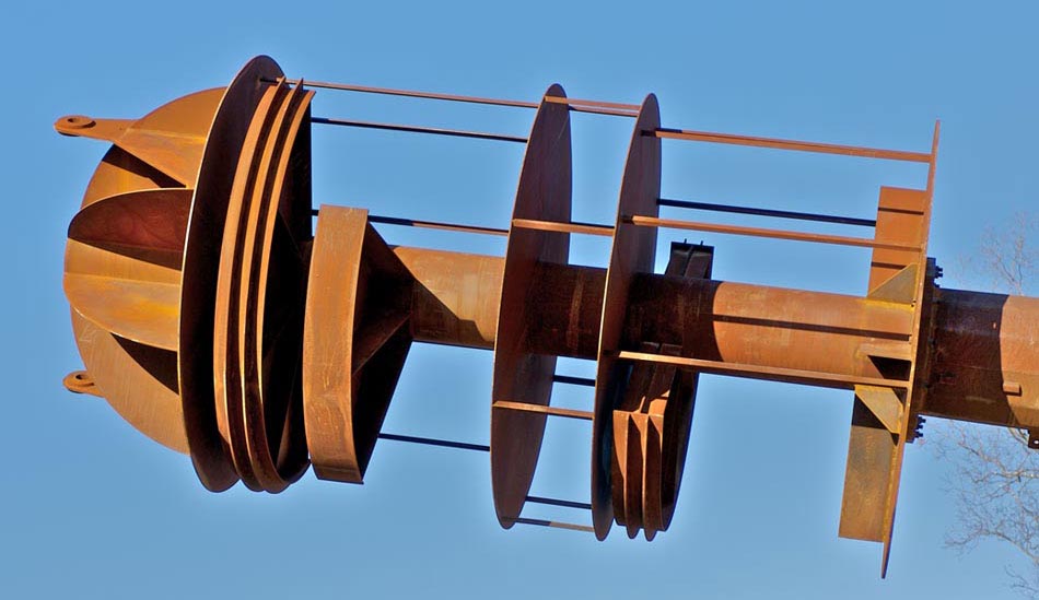 I’m pleased to learn that Edward Tufte, who taught the world exactly how to design data graphics, is also a sculptor. A recent sculpture of his hits a few of my soft spots: it’s huge, steel, and conceptually related to rocketry.